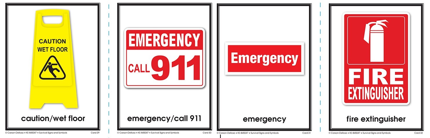 If you are working with students who may be easily distracted by the other elements in a real-world photo, try using Survival Signs & Symbols Flash Cards. This flash card set offers 94 different survival signs. Each card features a stand-alone sign displayed on the front with a simple definition of the sign on the back. These flash cards are a great way to review the signs and symbols that students will encounter in their daily lives with minimal distraction. As students become familiar with the signs, you can introduce the “real-world” photos you’ve taken.